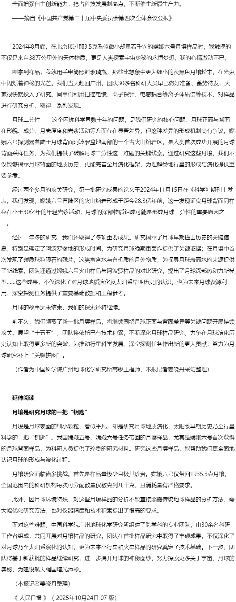 力争为月球研究补上“关键拼图”(迈向“十五五”的创新图景)